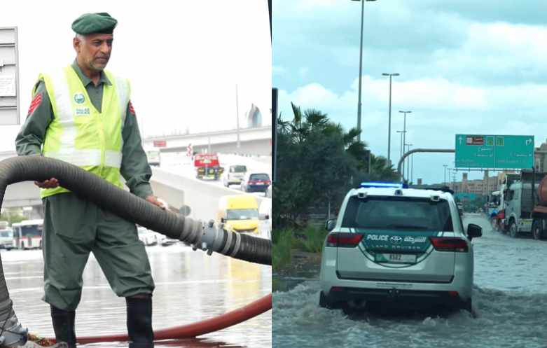 আমিরাতে ঝড়ো আবহাওয়ায় বন্যার জলাবদ্ধতা কাটিয়ে উঠতে এগিয়ে এলো দুবাই পুলিশ