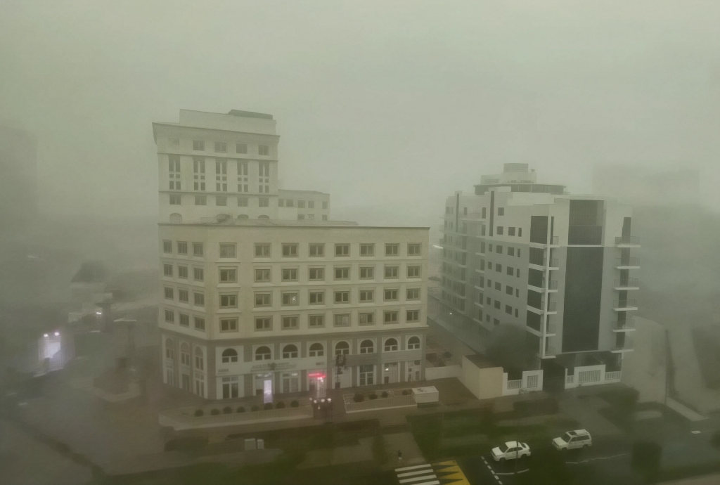 মাঝে মাঝে বাতাস শক্তিশালী হতে পারে, ধুলো এবং বালি উড়িয়ে অনুভূমিক দৃশ্যমানতা হ্রাস করতে পারে।
