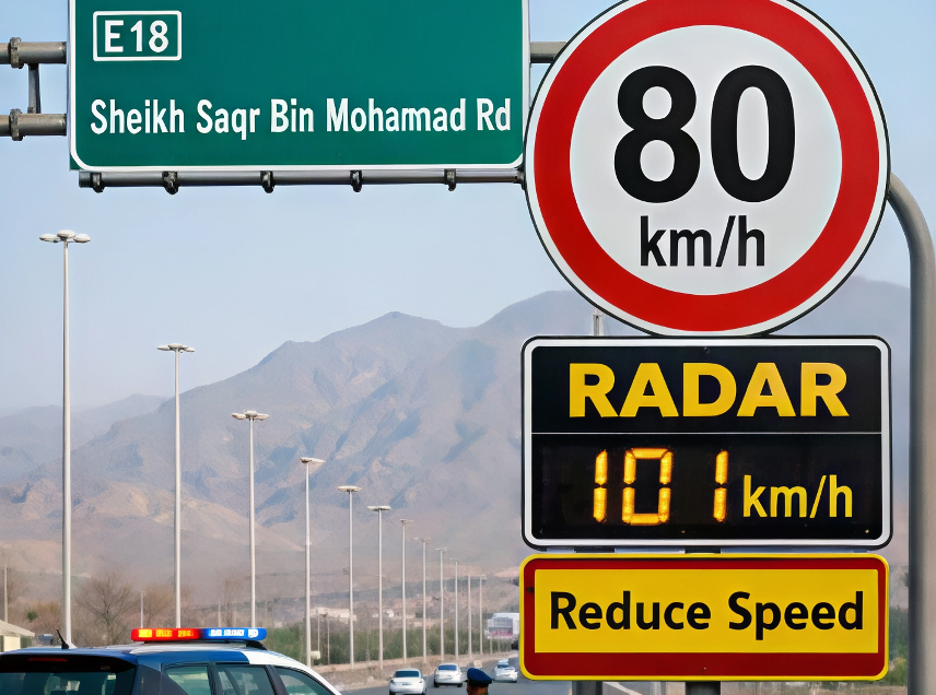 রাস আল খাইমাহ পুলিশের জেনারেল কমান্ড জানিয়েছে যে, অ্যাপ্লাইড টেকনোলজি স্কুল থেকে আল খারান রাউন্ডঅ্যাবাউট পর্যন্ত শেখ সাকর বিন মোহাম্মদ স্ট্রিট (E18) এর গতিসীমা ১০০ কিলোমিটার/ঘন্টা থেকে কমিয়ে ৮০ কিলোমিটার/ঘন্টা করা হয়েছে। আগামী মাসের শুরু থেকে নতুন সীমা কার্যকর হবে, রাডার এনফোর্সমেন্ট ১০১ কিলোমিটার/ঘন্টা নির্ধারণ করা হবে।
