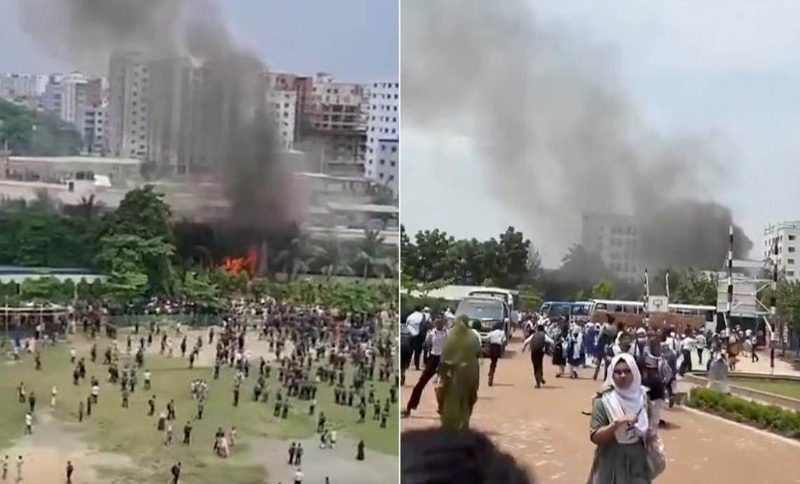 বাংলাদেশে কলেজ ক্যাম্পাসে বিমান বাহিনীর বিমান বি*ধ্বস্ত; নি*হত ১৯