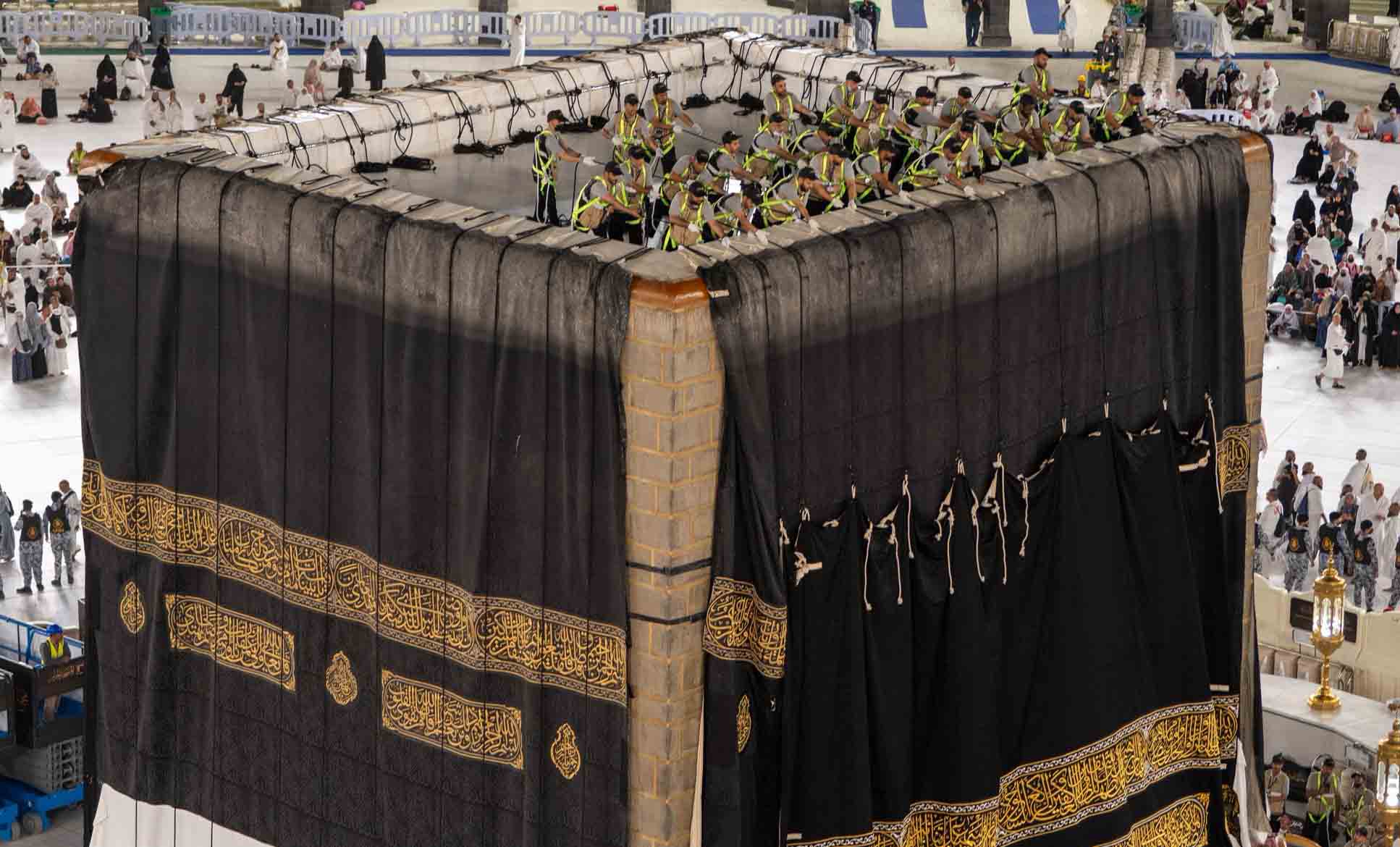 কাবায় প্রতিস্থাপিত হলো সোনার প্রলেপযুক্ত ১৪১৫ কেজি ওজনের কিসওয়া