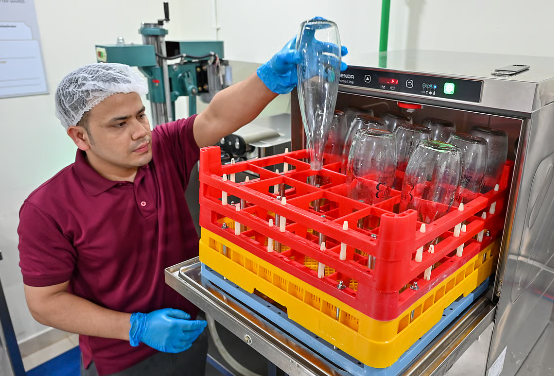 জীবাণুমুক্ত কাচের বোতলগুলি, ৮৫ ডিগ্রি সেলসিয়াসে বাষ্প এবং জল দিয়ে উত্তপ্ত করে, একটি স্বাস্থ্যকর বোতলজাতকরণ ব্যবস্থা ব্যবহার করে পূরণ করা হয় এবং মেয়াদ শেষ হওয়ার তারিখ দিয়ে সিল করা হয় যা তিন মাস পর্যন্ত বৈধ। সম্পূর্ণ সেটআপটি হোটেল দ্বারা পর্যবেক্ষণ করা হয় এবং প্ল্যান্ট প্রস্তুতকারক সংস্থা দ্বারা রক্ষণাবেক্ষণ করা হয় এবং জল নিয়মিতভাবে পরীক্ষা করা হয় এবং সরকারী স্বাস্থ্য কর্তৃপক্ষ দ্বারা অনুমোদিত হয়।