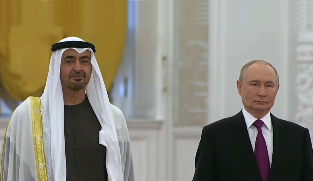সংযুক্ত আরব আমিরাতের প্রেসিডেন্ট শেখ মোহাম্মদ বিন জায়েদ আল নাহিয়ান বৃহস্পতিবার রাশিয়ার একটি সরকারি সফরে মস্কো পৌঁছেছেন। রাশিয়ার আকাশসীমায় প্রবেশের পর আবুধাবির শাসকের বিমানটি সামরিক বিমান দ্বারা পাহারা দিয়ে তাকে স্বাগত জানানো হয়।