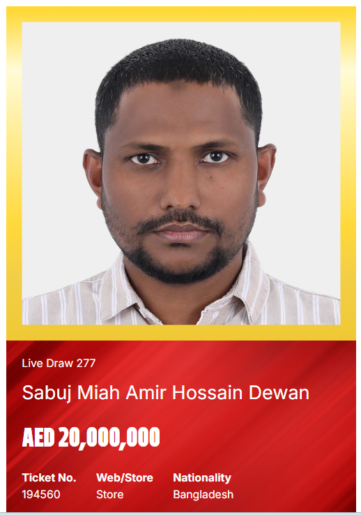 বাংলাদেশের ৪৩ বছর বয়সী এই ইলেকট্রিশিয়ান যখন জানতে পারেন যে তিনি জিতেছেন তখন তিনি নিজের ভাগ্য বিশ্বাস করতে পারেননি। তিনি বলেন, “আমি এখনই কাঁপছি; আমি এখনও বিশ্বাস করতে পারছি না যে এটি ঘটছে।”