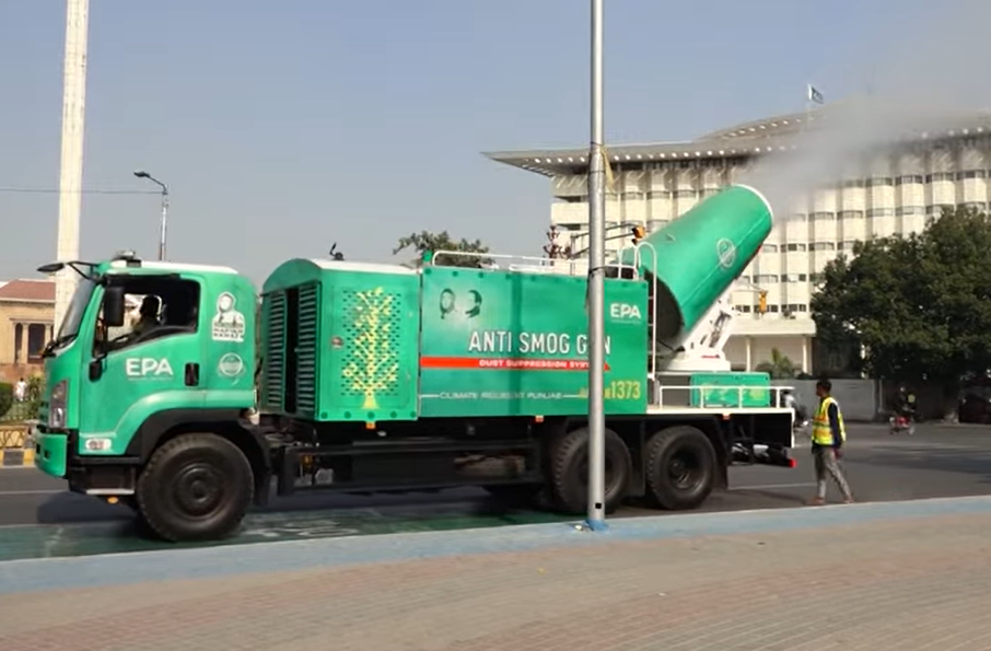 লাহোর শহরটি আরও একটি শ্বা*সরুদ্ধকর শীতের জন্য প্রস্তুত হওয়ায় পাকিস্তান লাহোরে মোবাইল অ্যান্টি-স্ম*গ ব*ন্দু*ক চালু করেছে। ট্রাক-মাউন্ট করা কামানগুলি ধুলো এবং কণা ধারণ করার জন্য সূক্ষ্ম কুয়াশা জল স্প্রে করে, যা বায়ু দূষণ কমাতে সাহায্য করে।